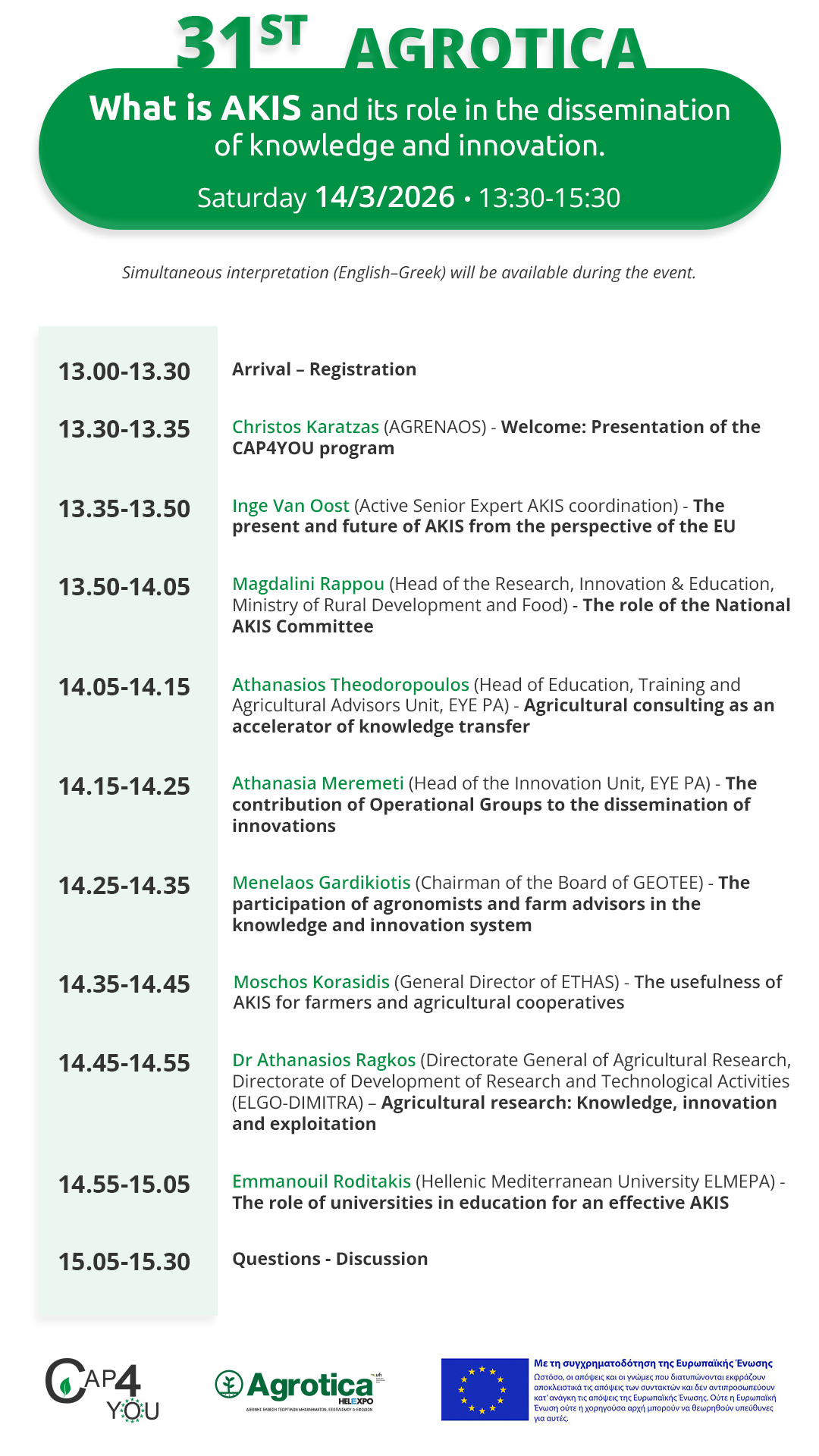 Our first-ever participation in Greece’s largest agricultural fair was a demanding but, in every respect, rewarding experience. Over the course of four days, we organized an event for AKIS in Greece with over 130 participants, informed hundreds of visitors at our booth about the Common Agricultural Policy, forged partnerships, and had the opportunity to meet new collaborators and talk with many colleagues.